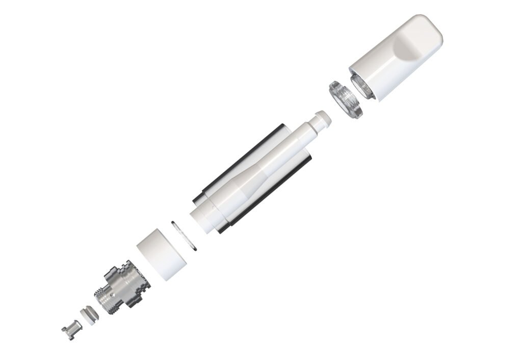 A genuinely full-ceramic vape cartridge — from the mouthpiece and center post to the heating core, every component is made of premium ceramic. Specially engineered for high-end THC oils.
